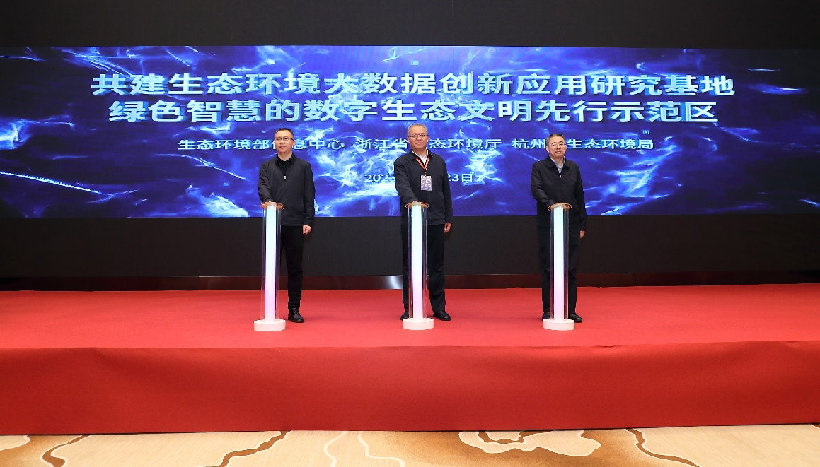 生态环境部信息中心副主任魏斌主持开幕式。会议期间,生态环境部信息中心、浙江省生态环境厅、杭州市生态环境局领导共同开启“共建生态环境大数据创新应用研究基地、共创绿色智慧的数字生态文明先行示范区”启动仪式。