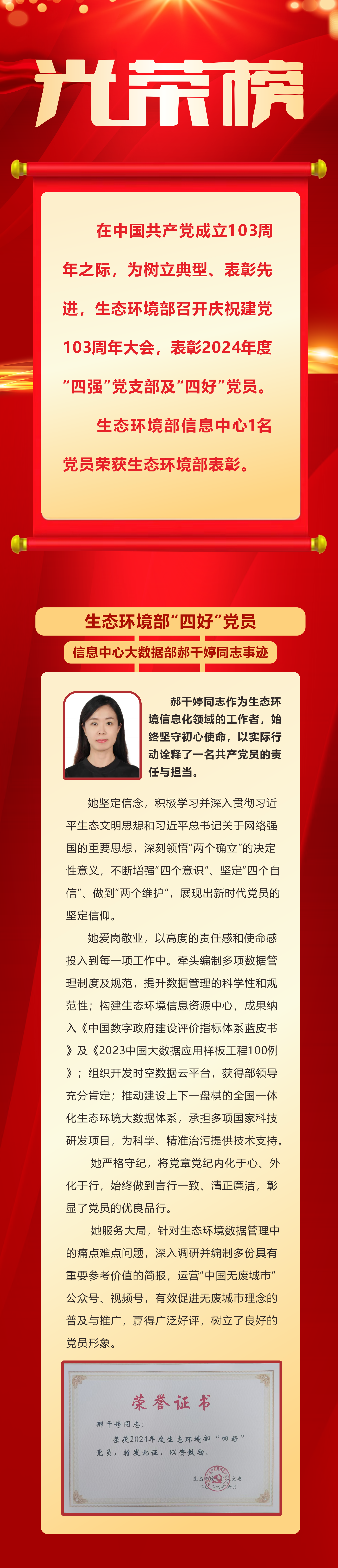 生态环境部信息中心1名党员荣获生态环境部表彰