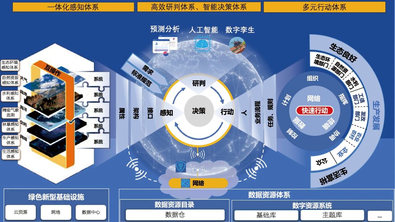 随着生态环境保护向精准、科学、依法升级发展,对生态环境问题时空演变与经济社会交互作用规律研判和系统科学决策提出了更高要求。现代化生态环境监测体系寻求全域态势感知能力,生态环境质量预测预报离不开快速精准的分析研判能力,国家环境守法行动则需要依靠高效的行动能力,而只有具备强大的决策能力,感知、研判才能转化为切实的行动。因此,生态环境保护迫切需要以提升“感知—研判—决策—行动”四大能力为主线,从基于数据的理解向基于知识的决策转变。