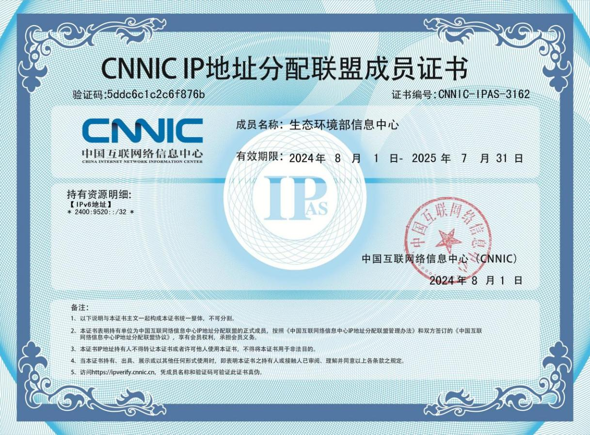 CNNIC IP地址分配联盟成员证书